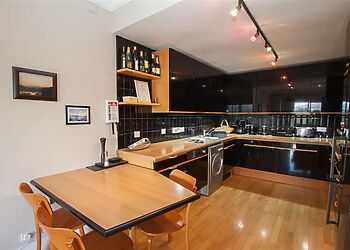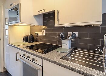 - Contemporary kitchen with stone worktops